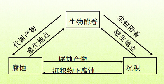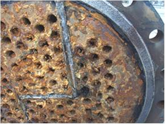 冷凝器腐蝕問題 u 腐蝕形成原因: 腐蝕是指通過化學或電化學反應使金屬被消耗破壞的現象。冷卻水中的溶解氧與設備接觸形成腐蝕電池,發生如下反應,促使金屬不斷溶解而被腐蝕。 u 腐蝕控制: 向循環水中投加較低量,適應系統水質的復合緩蝕劑,即能使設備腐蝕控制在標準規定范圍。對于碳鋼不銹鋼系統,優選阻垢緩蝕劑配方時,即已復配入配方中,能解決設備腐蝕問題,如果系統中有銅設備,則應另添加緩蝕劑,如恒古HG-301系列。 |